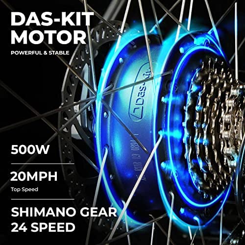 🚴【TOP-NOTCH BODY STRUCTURE】: Available in two sizes of tires (27.5″/29″); lockable aluminum suspension fork for less bumpy on rough roads; Aluminum alloy material for better durability. Sports style, streamlined matte surface, and simple decal style built an amazing look of these adult electric bicycles.