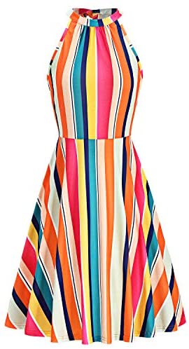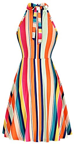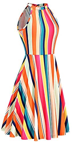 Options: Floral print informal summer season gown sundress, match and flare gown, halter prime gown and sleeveless in traditional A-line fashion