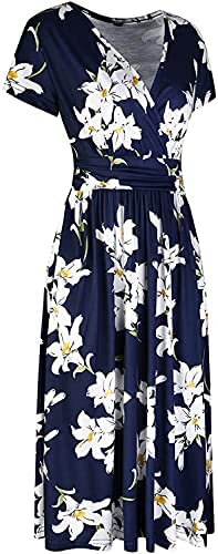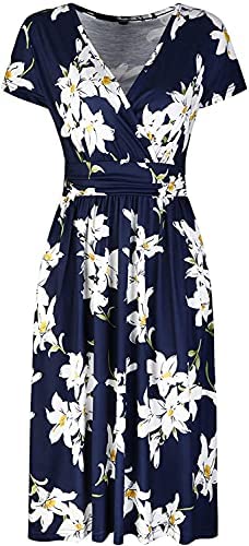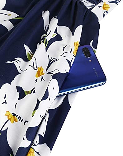 Brief sleeve, v-neck, A-line, floral patterned with each aspect pockets design, breathable, skin-touch, makes you feeling relaxed and cozy.