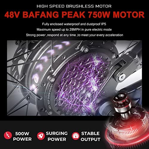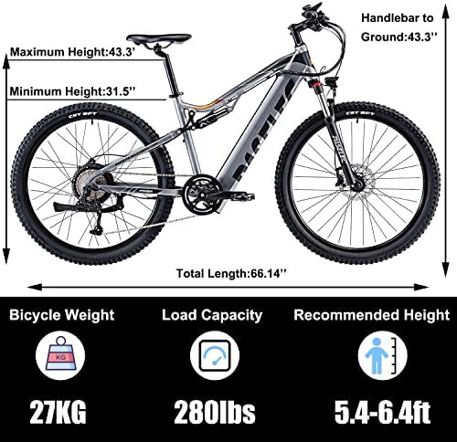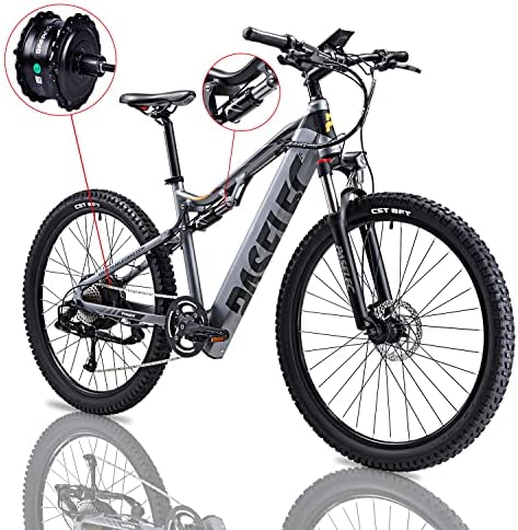 PASELEC Electric Bike for Adult, Electric Mountain Bike with BaFang Motor 750W Peak, Full Suspension Ebike with 13AH Removable Battery, 28MPH, Professional 9 Speed Gears