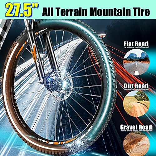 【Aluminum Frame and Hydraulic Brake】27.5 inch rear suspension adult electric mountain bike frame is made of high-quality Aluminum Alloy, which is light weight and solid and durable. Taiwan Zoom hydraulic brake, dual-piston caliper, four-finger adjustable lever with motor inhibitor, make electric bike braking more sensitive and riding safer.
