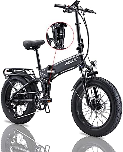 PASELEC Electric Bikes for Adults Folding Electric Bicycle 750W Motor Ebike Fat Tire Mountain e-Bike with 48V 12Ah Removable Battery, Full Suspension, 9 Gears Cycle for Men Women
