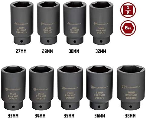 Powerbuilt 9 Piece Deluxe Axle Nut Socket Set, Tools for Removing Front Wheel Axle Nuts, Foreign Vehicles – 648991