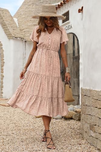 PRETTYGARDEN Summer Dress For Women V Neck Swing A Line Boho Beach Dress