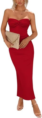 PRETTYGARDEN Summer Cocktail Dresses Maxi Long Strapless Bandeau Dress with Slit