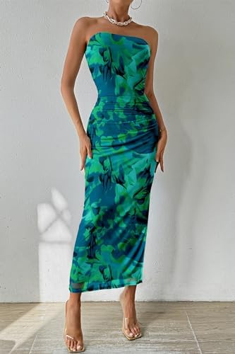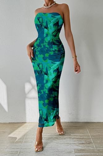 PRETTYGARDEN Printed Outfit for Women Party Club Night Strapless Dresses