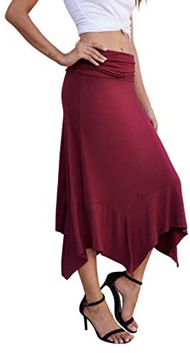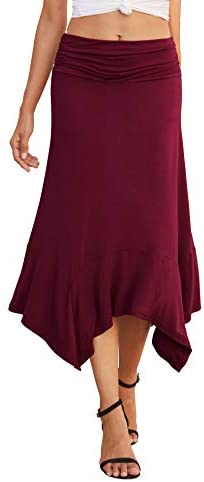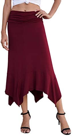 *Prinstory Girls’s Informal Elegant Flowy Handkerchief Hemline Midi Skirt*Sort: seashore skirt / Informal maxi sundresses / Informal skirt / Flowy skirt*Skirt Size: Under Knee Size.