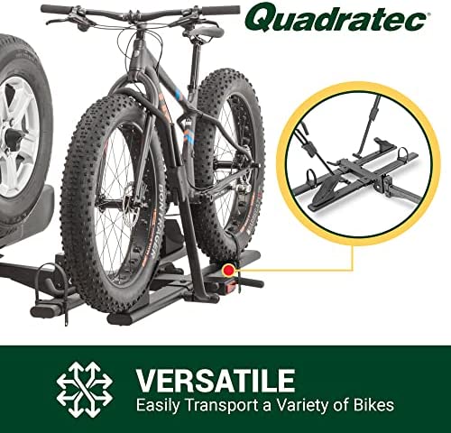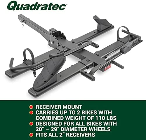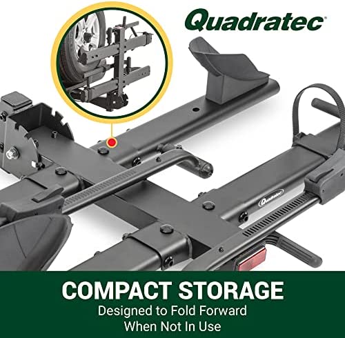 Quadratec 2-Bike Hitch Mount Platform Bike Rack Carrier – Fits Bicycles with 20" to 29" Wheels – Ratcheting Arm System – Anti-Rattle Hitch Pin – Universal Fits Jeep Wranglers – Foldable and Adjustable