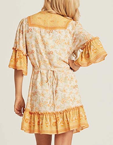 Bell Sleeves V-neckline with Floral Print gown Appropriate For Summer time Trip, Informal Day by day Put on.