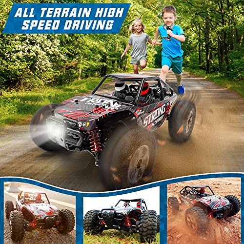 RADCLO 1:14 Scale RC Car, 4WD High Speed 40 Km/h Monster RC Truck for All Terrain, Remote Control Car with Headlight and Two 7.4v Rechargeable Batteries for Boys Girls Kids and Adults
