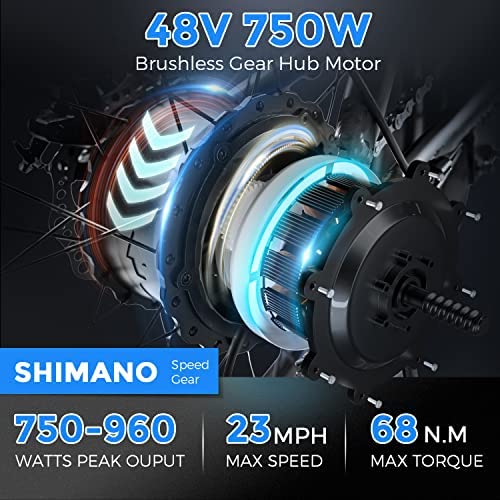 ✦POWERFUL MOTOR✦ The Ebike equipped with 750w brush-less, strong motor,provides power with max speed of 23 mph, more than enough power to your daily use, it can brings you to the work or a meander along your favorite trail, provide strong power when you reaching a hard road. It makes your riding more easier and more relax, have more joy when you riding.
