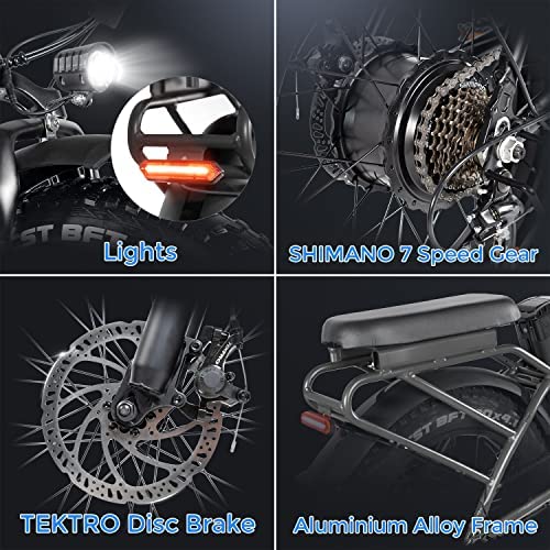 ✦FAT TIRES✦ 20”*4.0”fat tire is suitable for all terrain. Fat tire has super grip, which can ride on special terrain such as snow and mountains or hills, and there is no need to worry about daily use. Fat tires give you a stronger sense of security and riding experience, and enjoy unlimited riding fun.