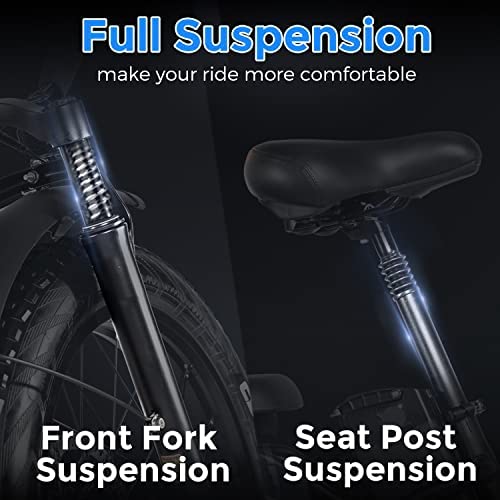 ✦FAT TIRES✦ 20”*4.0”fat tire is suitable for all terrain. Fat tire has super grip, which can ride on special terrain such as snow and mountains or hills, and there is no need to worry about daily use. Fat tires give you a stronger sense of security and riding experience, and enjoy unlimited riding fun.