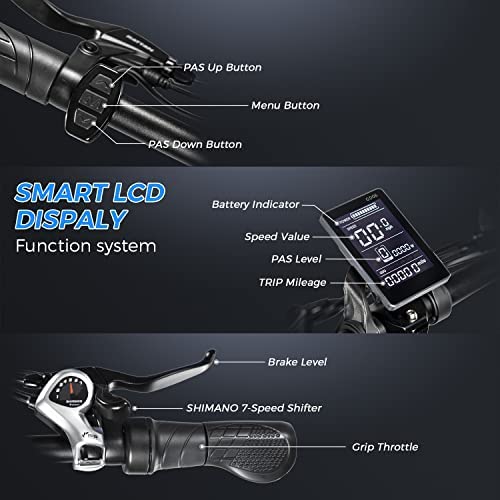 ✦3 WORKING MODES✦ The ebikes has 3 working modes, only throttle, pedal assist and only riding. You can choose any of the mode depends on your riding situation, you can choose any mode you like. You can choose pure riding for exercise and throttle or peddling assist for saving your energy. 3 working modes bring you more joy of riding.