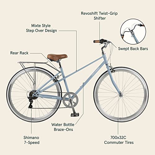 CONQUER YOUR COMMUTE Grooved 700x32C tires grip the pavement and dispel water for solid traction, rain or shine. Swept back handlebars offer a relaxed and comfortable hand and wrist position. Handy rear rack to carry anything you want to bring along.