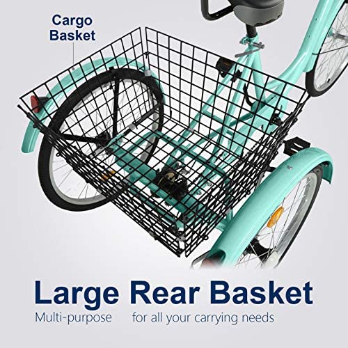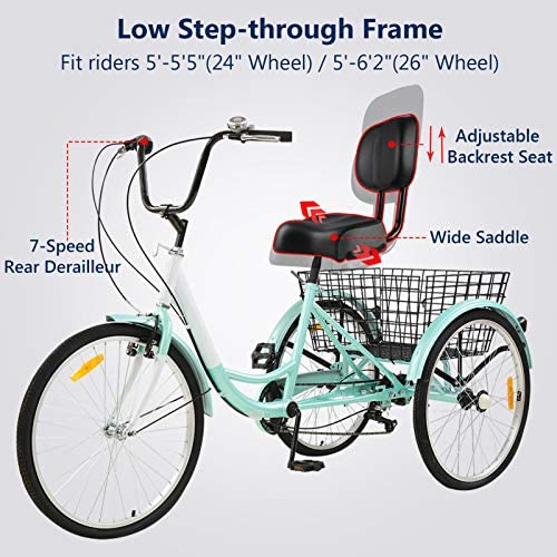 Sibosen Adult Tricycles 7 Speed 26 Inch Three Wheel Bike Cruiser Tricycle Featuring Low-Step Through Frame/Large Basket/Backrest Saddle for Men Women Seniors (Light Green, 26" Wheel / 7-Speed)