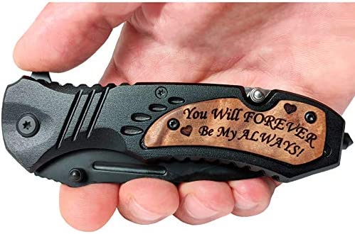 Your Beautifully Crafted Laser Engraved Pocket Knife: You will forever be my always is professionally engraved into the wood. High-Quality Engraving – Bright and Stands out against the material!
