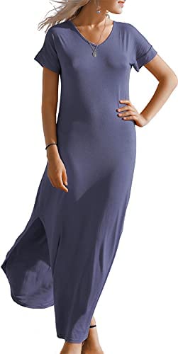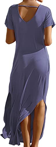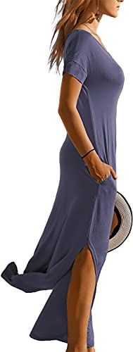 SouqFone Ladies’s Informal Maxi Clothes Seashore Cowl Up Brief Sleeve Cut up Lengthy Unfastened Costume with Pockets
