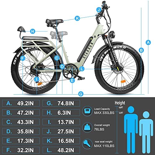 【MEET A VARIETY OF RIDING NEEDS】A STARRUN electric bike can meet the needs of many people and many riding needs. 1. 26″*4.0 puncture-proof tires, 750W motor, 15AH battery, shock absorbing fork and shock absorbing seat to meet the needs of young people off-road. 2. low span frame, thickened leather seat to meet the riding needs of women and older people. 3. leather rear seat and backrest to meet Carrying people needs.