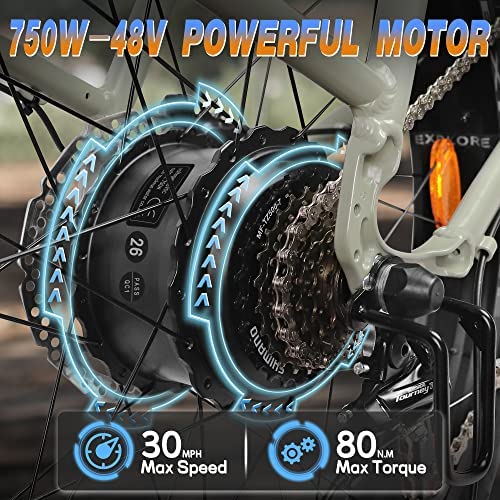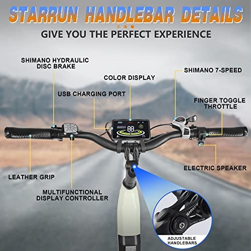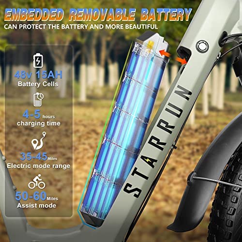 STARRUN Electric Bike, Electric Bike for Adults with 48V 750W Motor,Embedded Removable 48V 15AH Battery,Shimano Hydraulic disc Brake and 7-Speed,Color Display with USB Charging Port,26"*4.0 Tires…