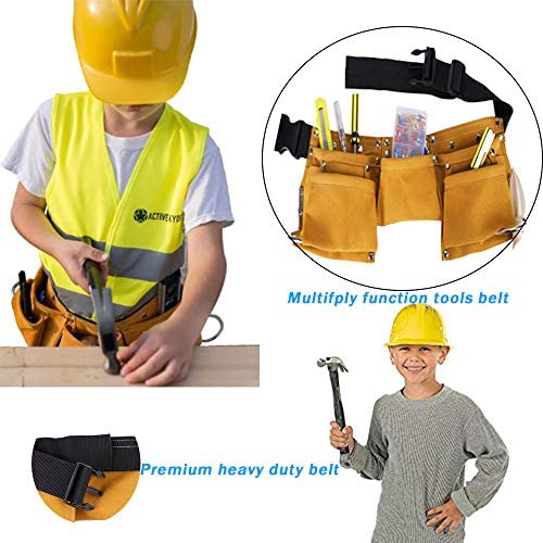 KIDS CONSTRUCTION TOOL BELT: The kid’s tool belt is perfect for kids’ construction play, child’s costumes, kids dress up and kids’ role-play. This tool belt is true with bright leather and the child loves to imitate for helping work on projects with dad and mom.