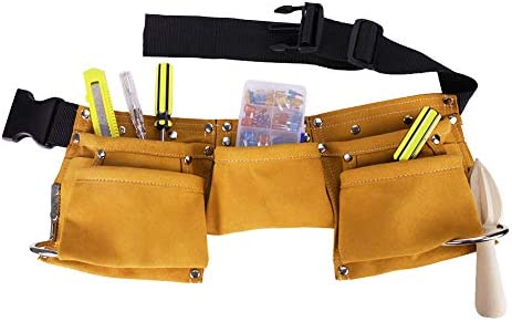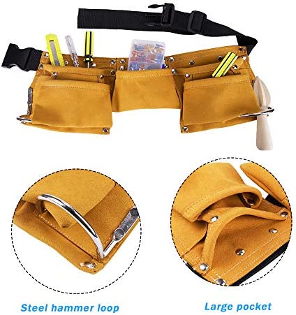 Belt design with 3/4″ adjustable heavy-duty nylon belt,2 Large Tool Pockets,2 nail pouches,1 tape measure pouch,2 pencil pockets.