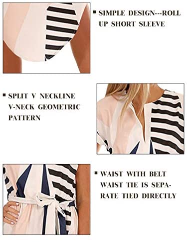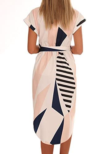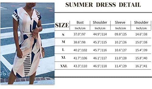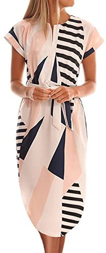 TEMOFON Girls’s Summer season Informal Floral Geometric Sample Brief Sleeve Midi V-Neck Get together Beneath Knee Costume with Belt