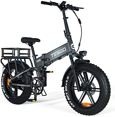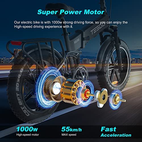 TESGO Folding Electric Bike 1000W HUM-PRO with Samsung Battery (48V 17.4AH)- 20" 4.0 Fat Tire Bikes Full Suspension – EBike Bicycle for Women/Men with 8 Speed, Hydraulic Brake- Rear Basket Included