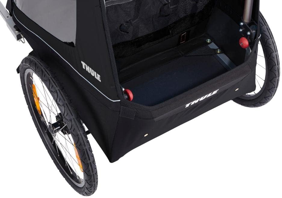 A safe, comfortable ride that easily transforms to a stroller once you reach your destination. This bike trailer includes a biking and basic strolling kit​, an adjustable handlebar​ and extra storage compartment. The simple, compact fold​ makes it easy to transport. Thule Coaster XT uses the patented ezHitch for easy and quick attachment to bike, making it great for both busy commutes and relaxing recreation.