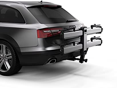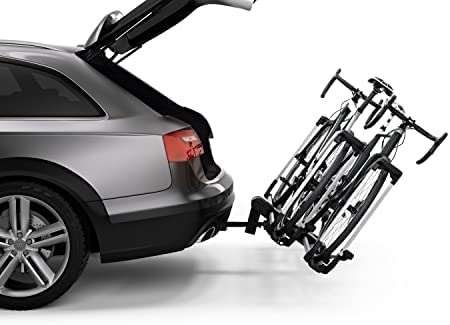 Convenient access to the rear of the vehicle using the HitchSwitch lever to tilt the rack down, even with bikes on it
