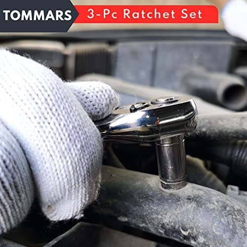 TOMMARS Ratchet Set, 1/4, 3/8, 1/2 inch Drive Ratchet Socket Wrench Tool, 72-Tooth, Quick-Release Reversible