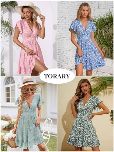TORARY Women’s Short Sleeve Floral Flowy Mini Dress Summer Dresses 2024