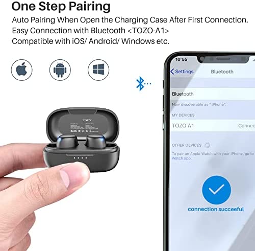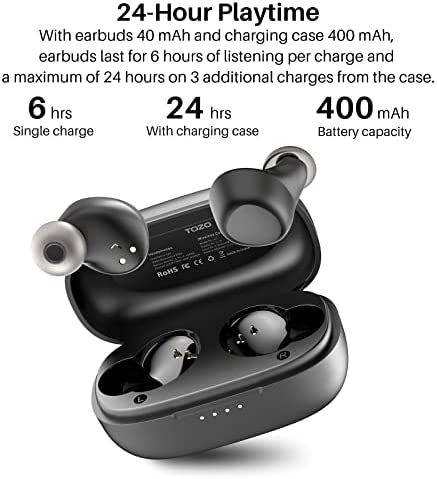 [Stereo sound quality] TOZO A1 earbuds’6mm diameter speaker presents a powerful and wide sound range, which makes the treble full of dynamics, and the bass powerful.Adopt advanced Bluetooth chip makes the sound played by the earphones much more beautiful and pleasant, suitable for sports or home work