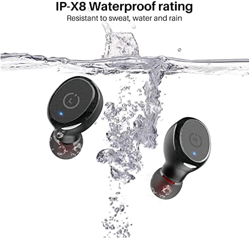 [IPX8 waterproof] Earbuds and charging case inner Nano-coating makes it possible to waterproof for 1 meters deep for 30 minutes. Waterproof and sweatproof lastest technology can effectively prevent from the damage of the splash by sweat and raindrops.