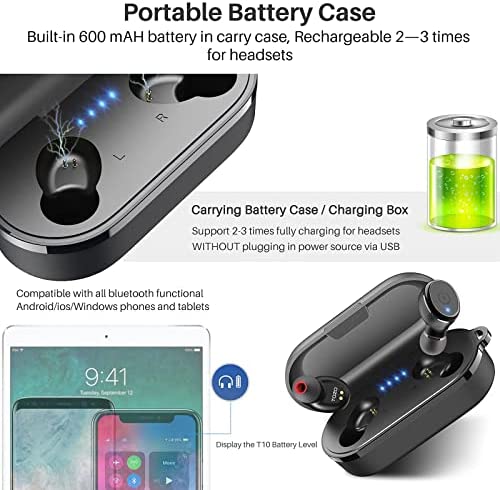 [One step pairing] Simply take 2 headsets out from the charging case, and they will connect each other automatically and then only one step easily enter mobile phone Bluetooth setting to pair the earbuds.