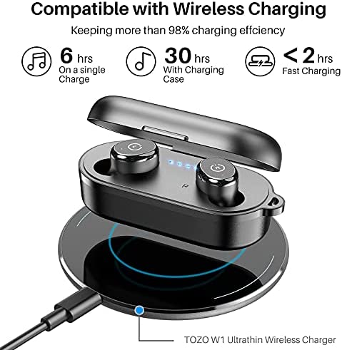[Charge on the go] Playtime lasts for over 6 hours from single charge and total 30 hours with charging case. Enjoy fast charging, to fully charge the rechargerable case only 1.5 hours via fast charge USB-C cable or less than 2 hours via wireless charger. Providing convenient charging way with no strings attached.