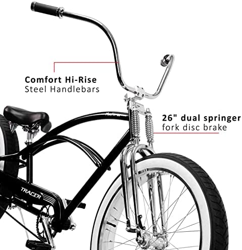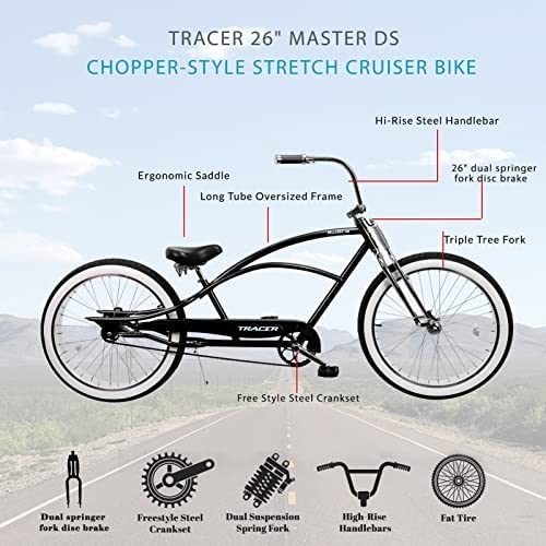 DUAL SPRINGER: The Tracer Master Beach Cruiser is a dual Springer bike that is designed specifically for cruising on the beach or on the street. It features a durable frame and a comfortable seat, and it is easy to operate thanks to its simple gearing and braking system.