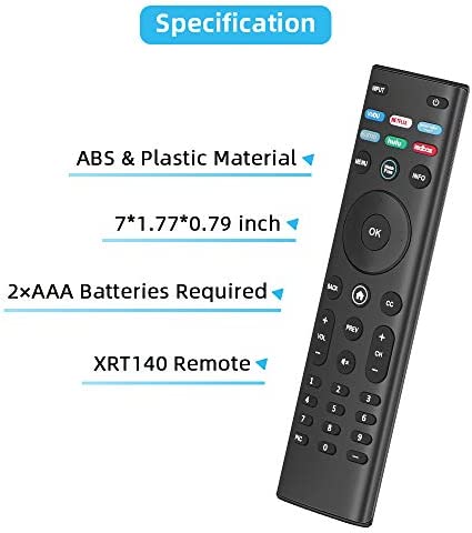 XRT140 Remote for Vizio Smart Remote, Vizio Smartcast Remote, Vizio Remote, Vizio TV Remote with Vudu, Netflix, Prime Video, Xumo, Hulu and Redbox.