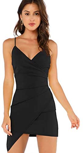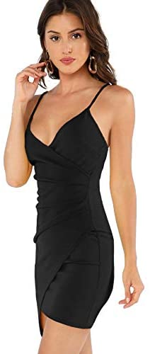 Verdusa Elegant Spaghetti Straps Deep V Neck Sleeveless Ruched Bodycon Fitted Cami Mini Costume