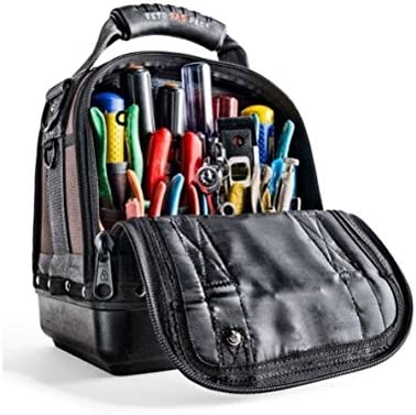 Small, lightweight organizer for toubleshooting, diagnostics and job specific setups. Holds tools, meters and compact cordless drill compartment. Webbed handle withover-molded rubber grip.