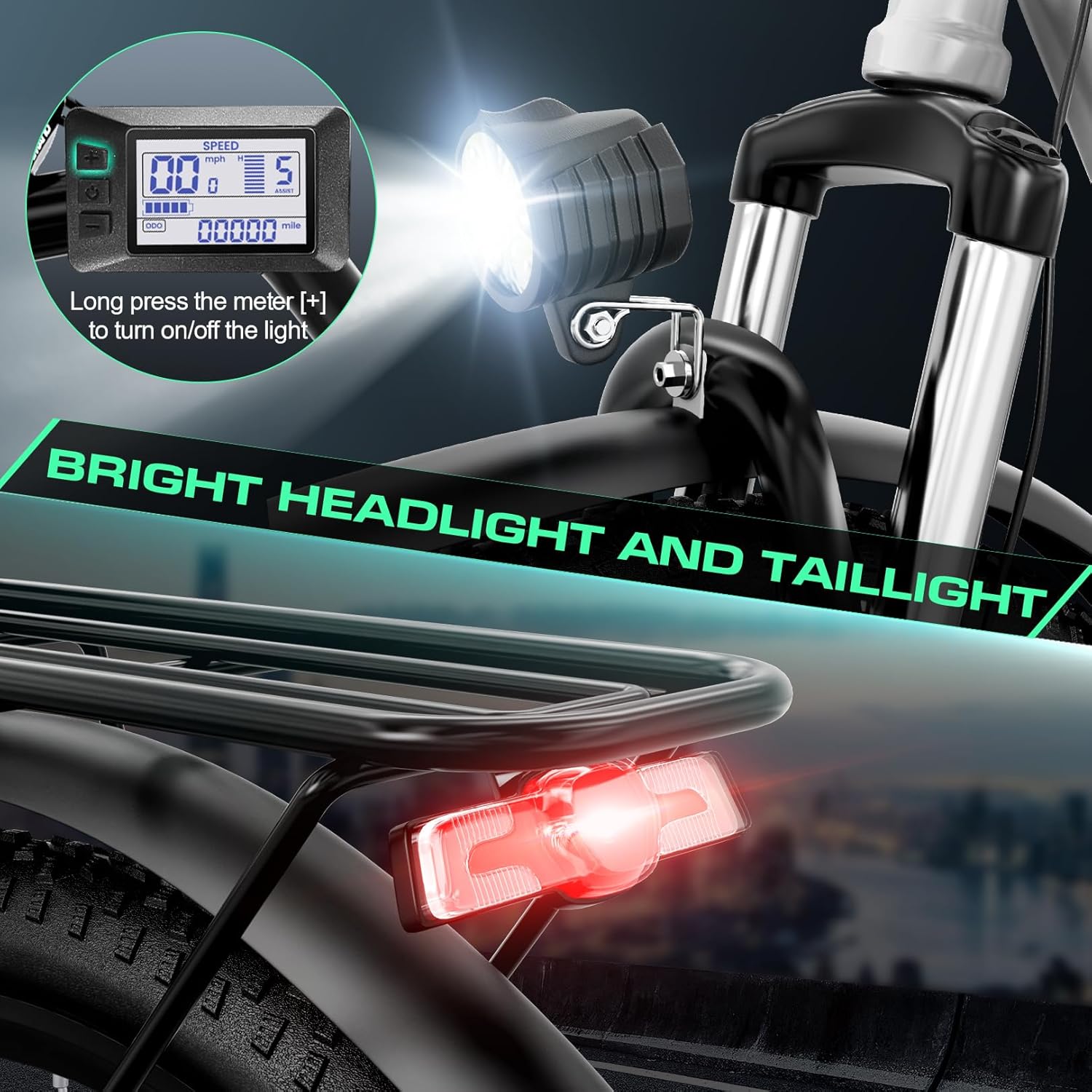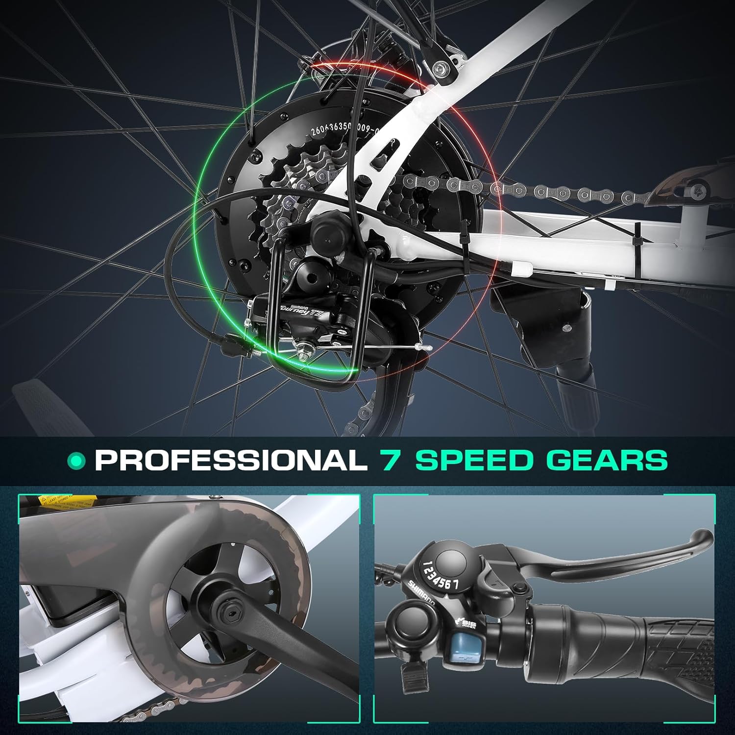 【PREMIUM CONFIGURATION】With front and rear disc brakes for reliable all-weather stopping power, fully protect your safety. Professional 7 speed transmission system, you can choose any speed according to your needs, enjoy a safe and smooth journey. The comfortable seat and wide handlebars are great for long leisurely rides or commutes to and from work. Equipped with detachable waterproof line design, easy to replace accessories