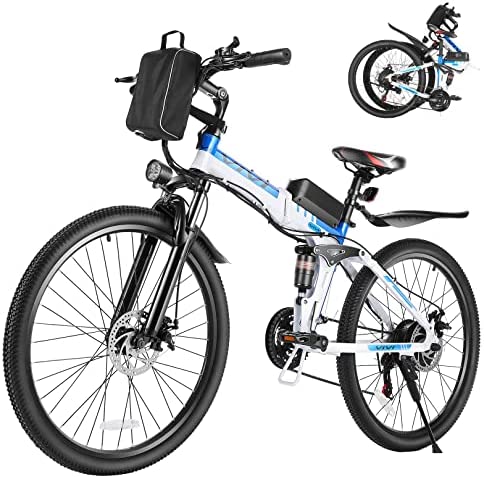 Vivi Electric Bike for Adults, 500W Folding Electric Mountain Bike 26'' Ebike, 20MPH Adult Electric Bicycle with 48V Removable Battery, Up to 50 Miles, Shimano 21 Speed, Full Suspension