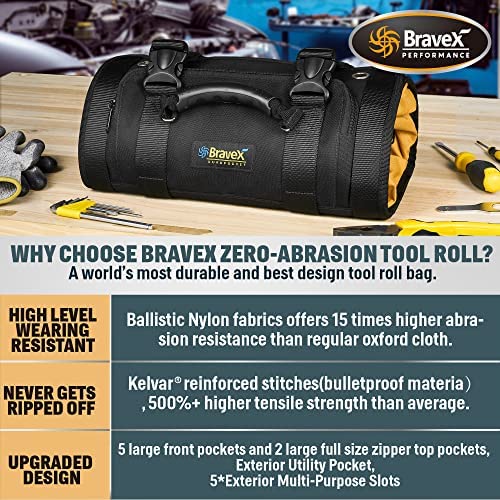 Voltstorm Tool Roll Tool Bag – Ballistic Nylon 1200D Kevlar Stitches YKK Zipper Wear Resistant, Zero-Abrasion Tool Bag 12 Pockets Wrench Roll Up Tool Pouch for Motorcycle Electrician Carpenter Plumber