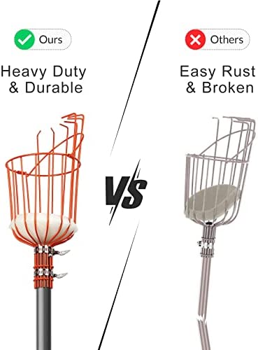 High Quality and Durable: This fruit picker pole is made of rustproof high-quality stainless steel with power-coated, provides lightweight and laborsaving. Additional anti-pull screw and two metal ring to make the pole and fruit catcher more firmly connected and durable without bending, break or warping. The stainless steel basket with only 2.2 LBS is processed with anti-rust and anti-corrosion coating, sturdy enough to sustain fruits without deformation, bending or break.