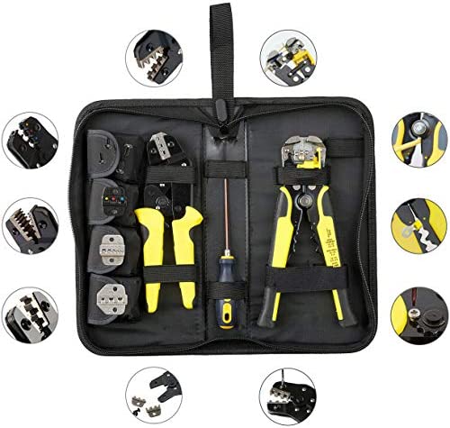 Wire crimper tool kit contains 4 crimping die set.