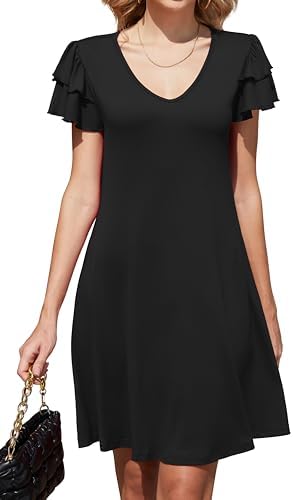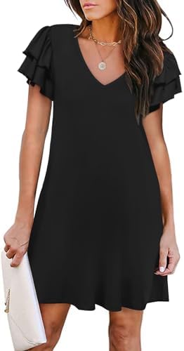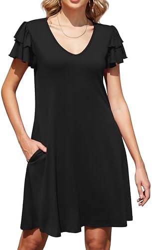 NIVYEE Women’s Casual Dress Ruffle Sleeve V Neck A-Line Trendy Cocktail Dresses