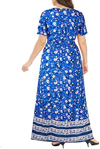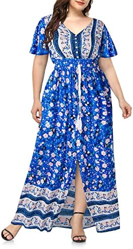 Plus Size Summer Maxi Boho Dress Button Front Long Sundresses
