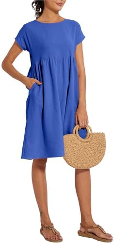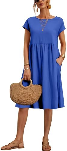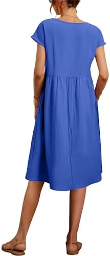 Summer Short Sleeve Dress for Women Flowy Crewneck Beach Dresses with Pockets