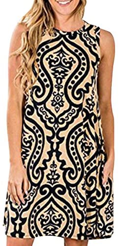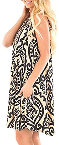 Women’s Summer Sleeveless Damask Print Pocket Unfastened T-Shirt Dress