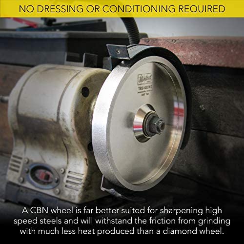 NO DRESSING OR CONDITIONING REQUIRED – A CBN wheel is designed for sharpening high speed steels and will withstand the friction from grinding with much less heat produced than a diamond wheel.